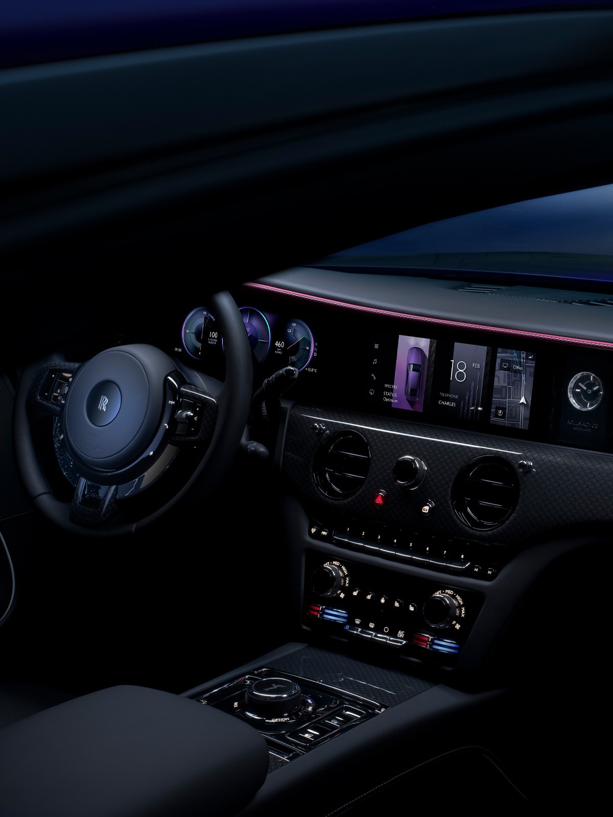 先看看动力,闪灵BlackBadge堪称“动力猛兽”。它的双电机系统经过全方位升级,功率从577马力飙升到659马力,扭矩更是高达1075N·m,成功登顶劳斯莱斯119年历史的动力榜单,比搭载V12发动机的BlackBadge古斯特还要强劲。能有这样的突破,得益于两大创新亮点。“无限模式”很酷炫,按下方向盘上的∞按钮,功率限制瞬间解除,仪表盘也切换成动态主题,致敬二战时期的航空发动机增压技术;“激扬模式”更是给力,弹射起步功能让车辆零百加速仅需4.3秒,比标准版快了0.2秒。