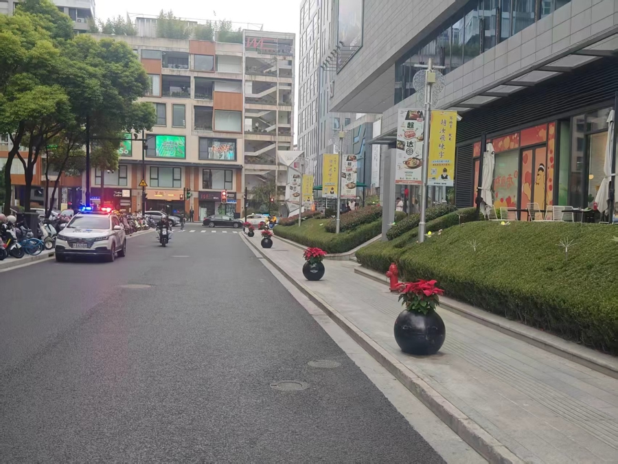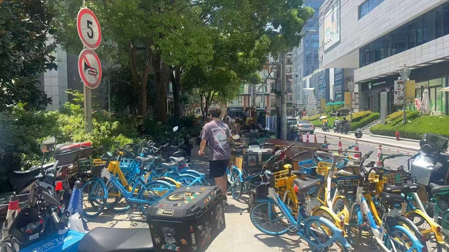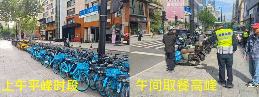 午间高峰(11:00-14:00),街道专人提前清运剩余共享单车,区域切换为外卖专用临停区,30余个专属车位让骑手“即停即取”,步行50米可达商圈餐饮集中区。