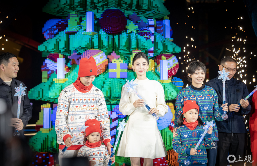 当晚,张柏芝化身乐高“冬日星愿大使”与嘉宾、游客一起点亮星愿树,同大小玩乐家共同见证上海乐高乐园冬日庆典开启。