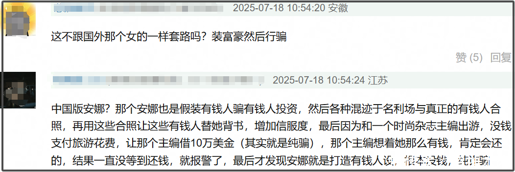 就多肉饱饱涉诈案细节看,网友联想到了海外知名诈骗犯安娜,都是装有钱人骗有钱人,同样的套路永远有人上当……