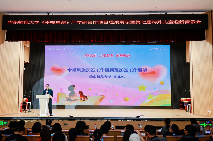 1月10日,多特瑞“点亮星光 爱暖申城”华东师范大学《幸福星途》产学研合作项目成果展示暨第七届特殊儿童迎新音乐会活动在华东师范大学教育发展大楼举办。活动集中展示了科技助残与社会关爱结合的最新成果,为孤独症儿童及青少年提供了展示才能、融入社会的舞台。